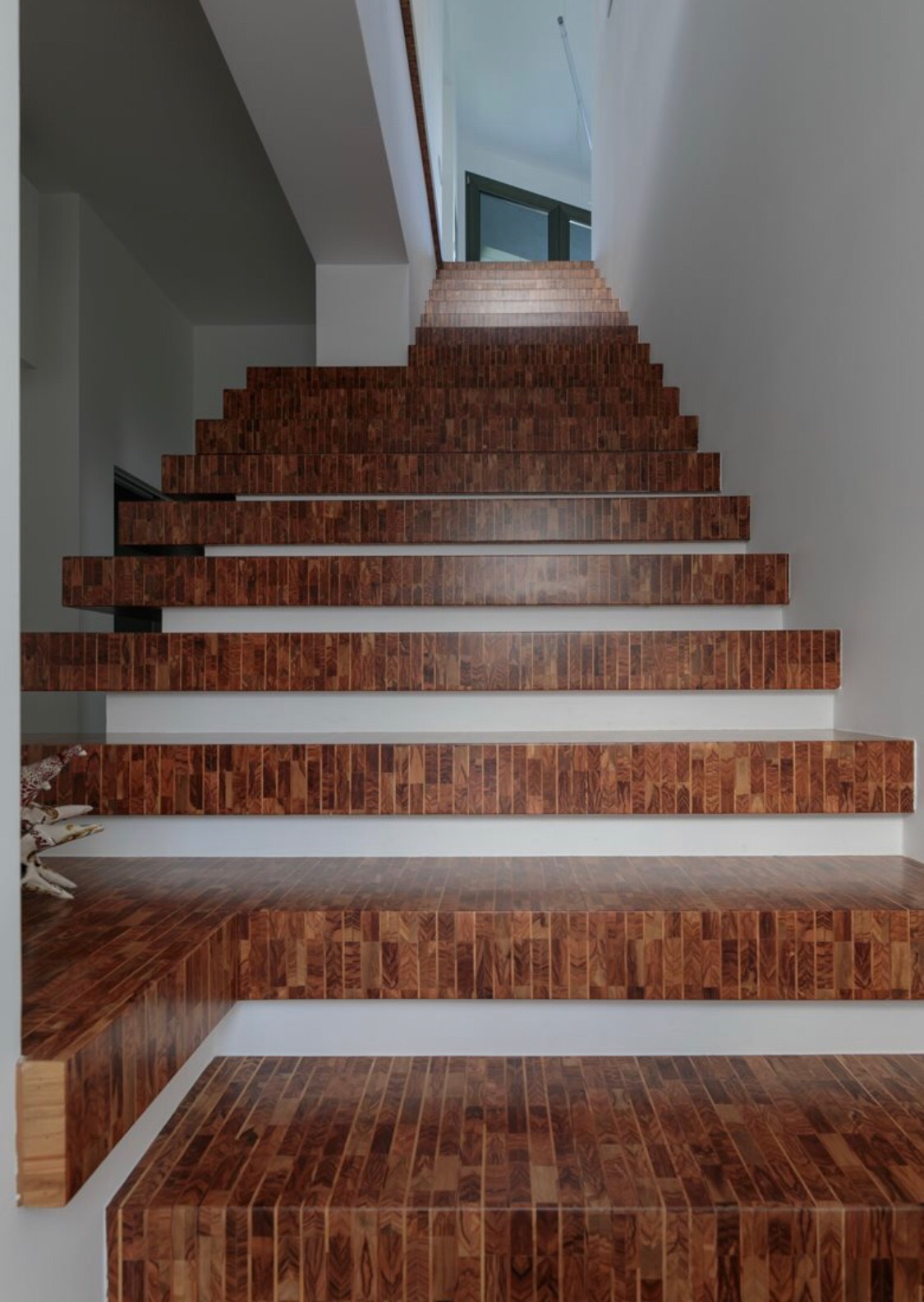 SCALA E PAVIMENTO IN LEGNO OLIVO E COMPLENTI
